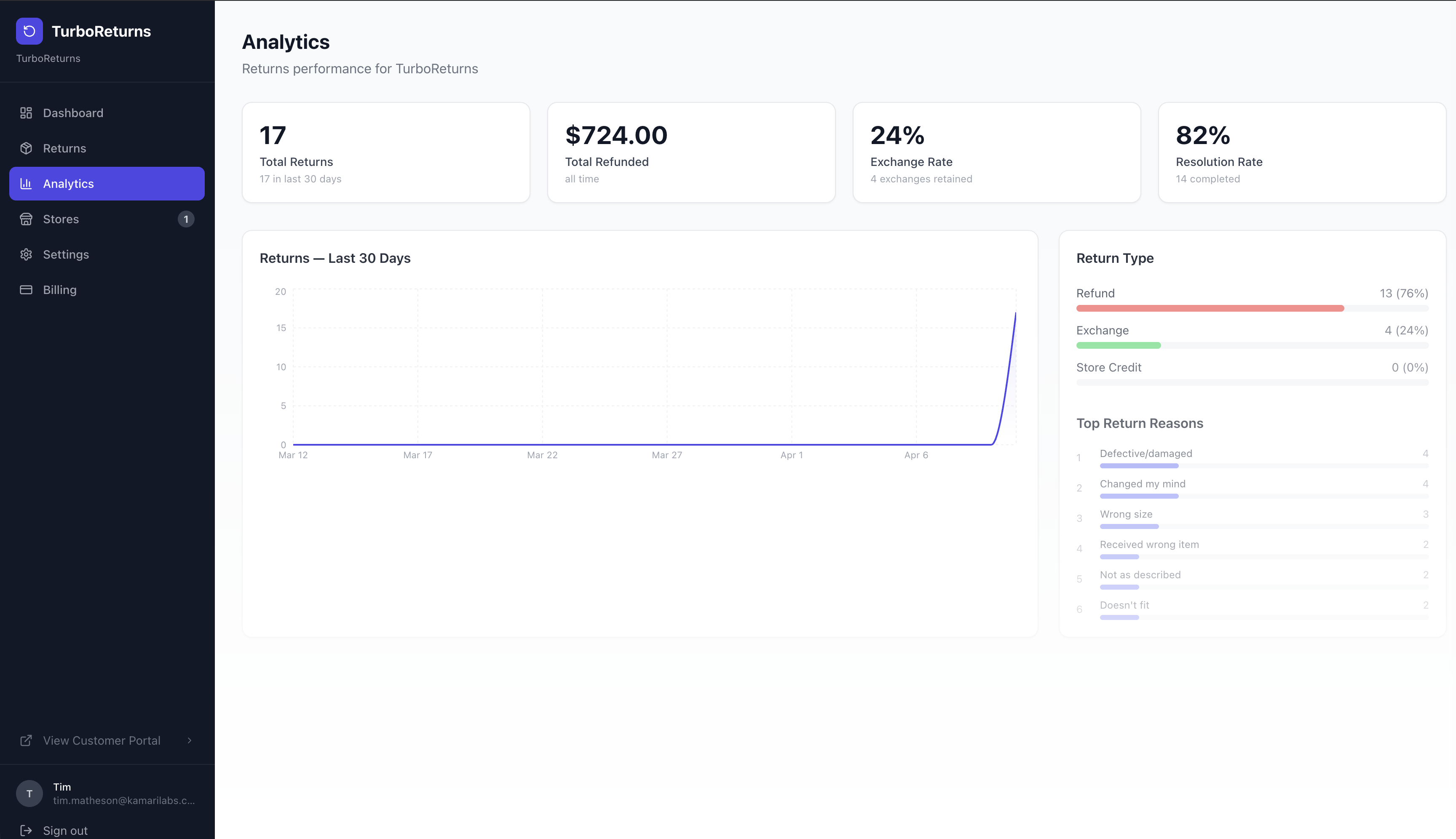 “We cut refunds by 34% in the first month just by offering exchanges at the right moment. TurboReturns paid for itself immediately.”